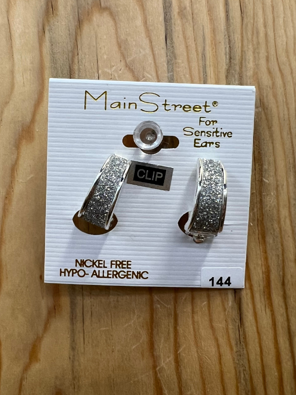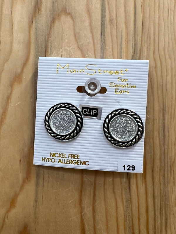 Main Street Earrings #144 Silver Glitter CLIP STYLE