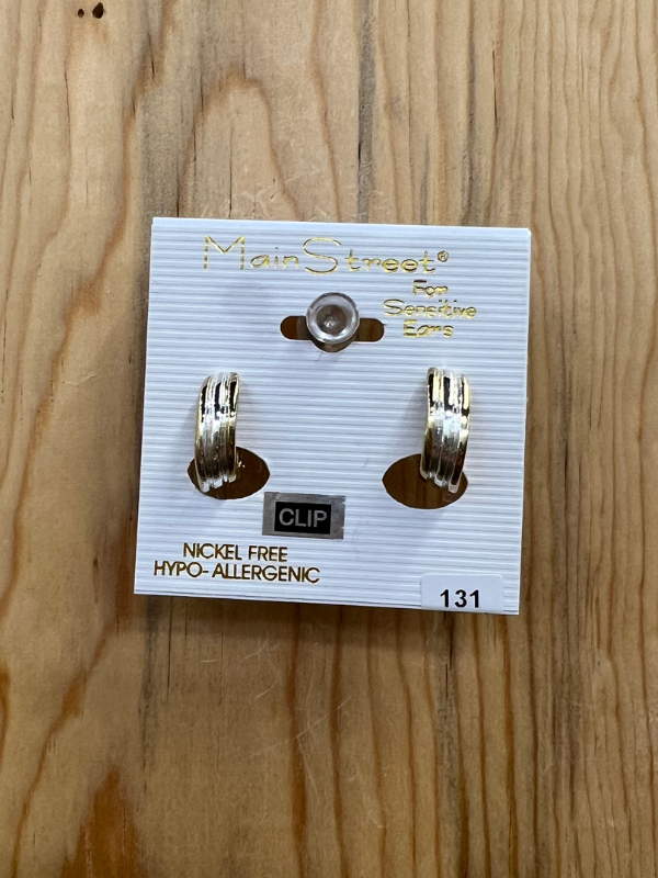 Main Street Earrings #128 Gold With Stones Hoop CLIP STYLE