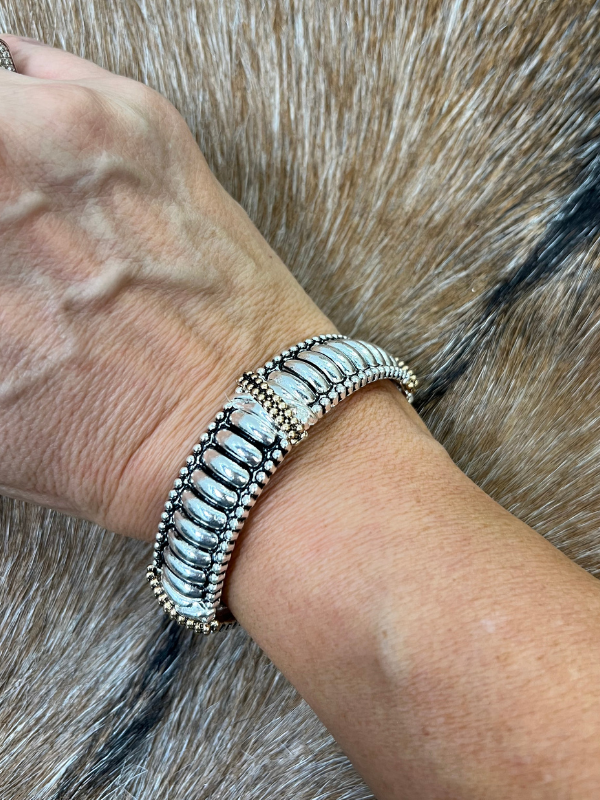 Large Rope Coils Silver With Gold Beaded Rounds Stretch Bracelet