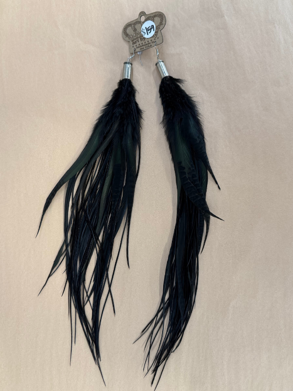 All Black Feather Earrings Art By Amy