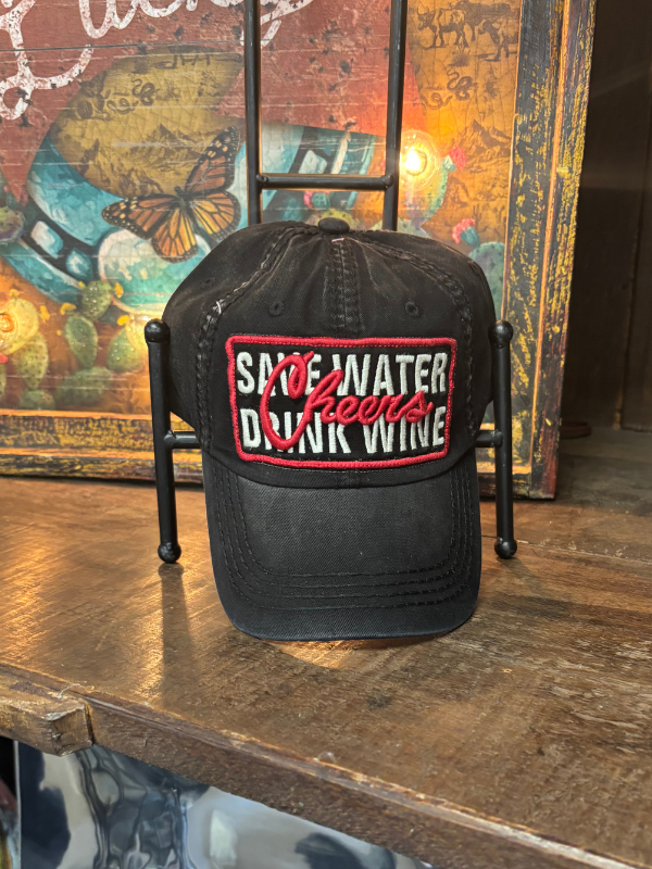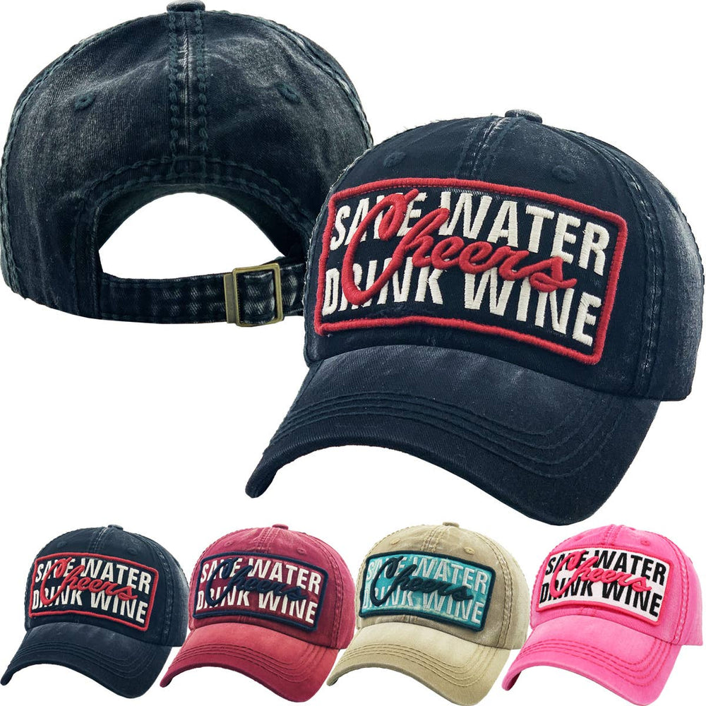 Save Water Drink Wine Vintage Ballcap One Size Adjustable Black