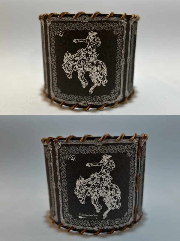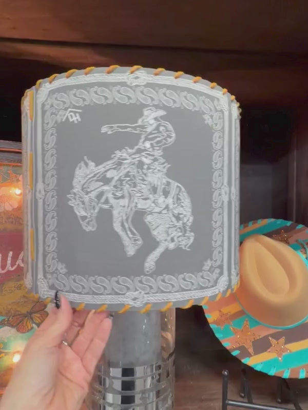 Lampshade Bandana Bronc Black Large 14-inch Saddle up your space with this bold black bandana lampshade that brings Western flair to any room. The classic bronc design captures that rugged rodeo spirit, while the generous 14-inch size delivers serious style impact. Perfect for denim lovers and cowboy enthusiasts who want their décor to match their attitude. Transform your lighting into a conversation starter that celebrates the wild side of Southwestern living.