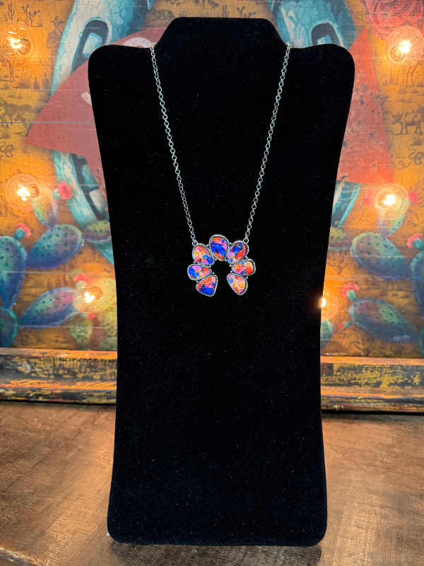 Faux MultiColor Western Print Navajo Blossom Necklace