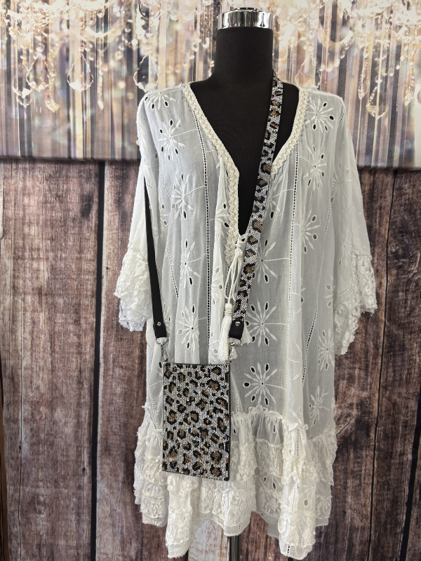White With Turquoise Cell Phone Crossbody