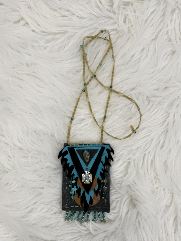 Carry your essentials in style with this eye-catching Eagle Turquoise Cell Phone Crossbody. Featuring vibrant turquoise tones adorned with intricate beading, this compact bag measures 3x4 inches—perfect for phones, cards, and small valuables. The adjustable 16" strap drop allows for comfortable crossbody wear, keeping your hands free while you're on the go. A standout accessory that blends Southwestern flair with everyday functionality.