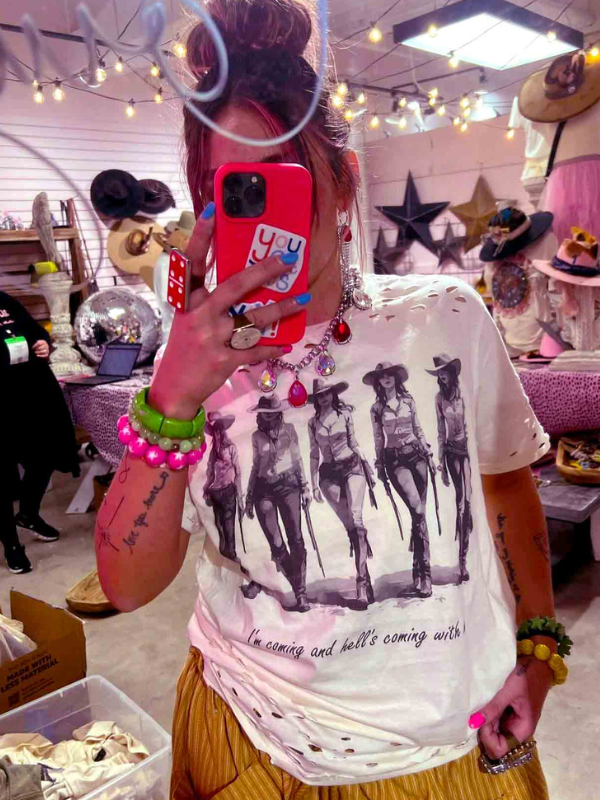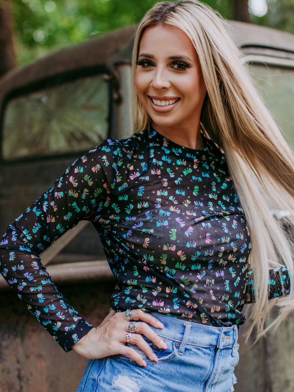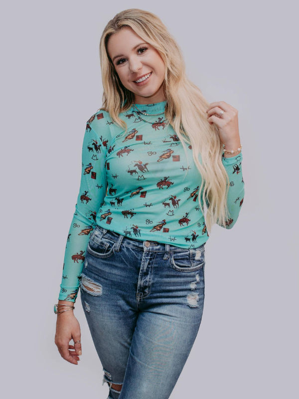 Merigold Kiss Long Sleeve Western Scene Mesh Top