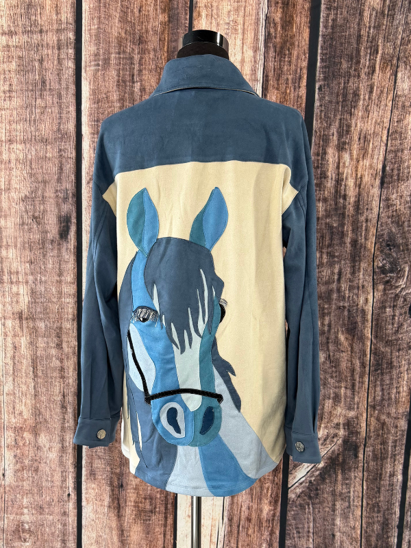 Way Blue Horse Button Up Top With Pockets